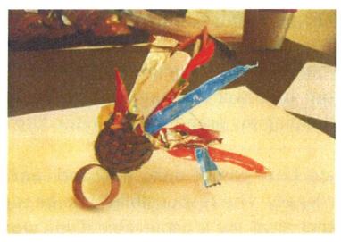 Keri-Mei made this ring using a collection of rubbish she found at Porirua harbour. “I hope this makes people think about what they are doing to each other and our land. The weaved basket is made of recycled copper. It represents how we use kete to collect our kai moana. It is filled with rubbish. Ironically enough, it is all food rubbish, and all from our poor harbour.”